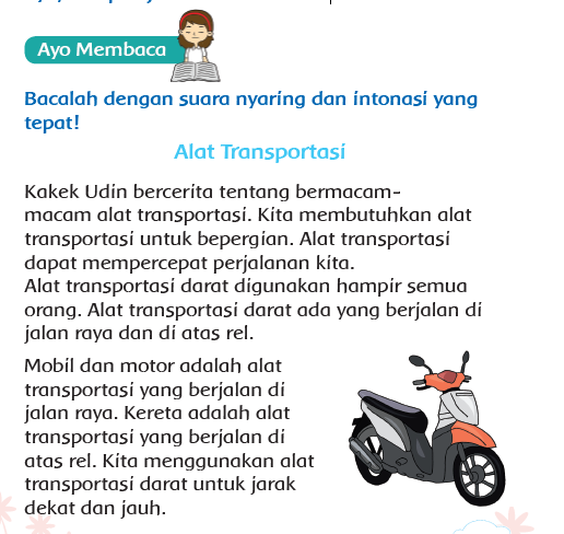 Amati kembali teks “Alat Transportasi”! Garis bawahi kata-kata tentang alat transportasi!